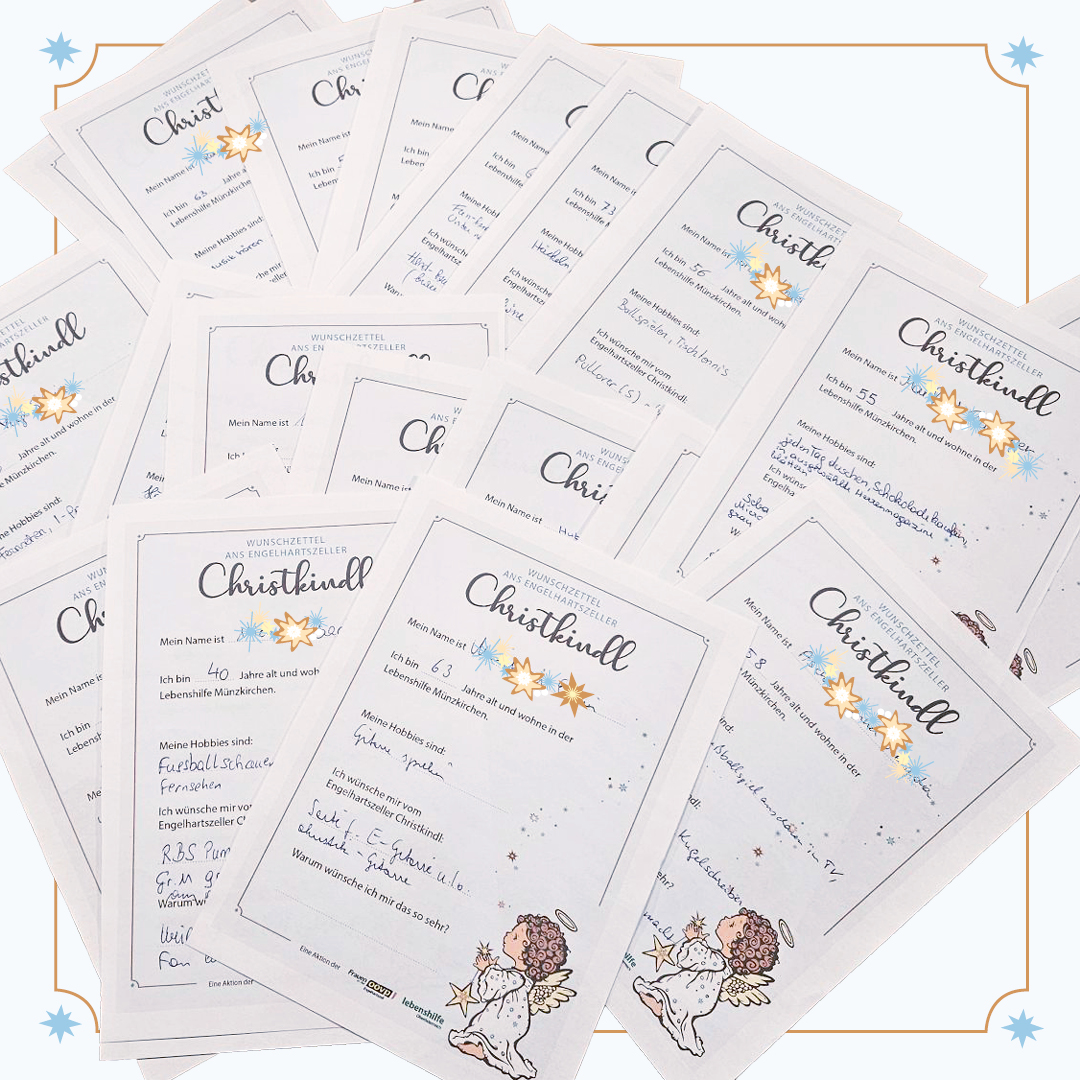 Ortswechsel Münzkirchen: Die 22 Bewohner:innen des Wohnheims der Lebenshilfe Münzkirchen durften in der Adventszeit Wunschzettel an das Engelhartszeller Christkindl ausfüllen. Das Christkindl ging damit auf Shoppingtour, um alle diese Wünsche zu erfüllen. Im Rahmen einer Adventfeier wurden die Geschenke vom Team der Frauen in der OÖVP Engelhartszell kürzlich an die lieben Bewohner:innen in Münzkirchen übergeben. Die Freude über die erfüllten stand den Bewohner:innen im Gesicht geschrieben. Vom Pullover über Wolle, Malstifte, Bettwäsche, CD’s bis hin zum Fußball waren die Wünsche vielfältig und für das Engelhartszeller Christkindl absolut erfüllbar. Natürlich hat das Christkindl jedem Geschenk auch einen persönlichen handgeschriebenen Brief mit Christkindl-Stempel beigelegt. Eine ganz besonders liebevolle Geste für Menschen mit Beeinträchtigung, denen es nicht so gut geht. „Meinem Team und mir ist es wichtig, mit den Einnahmen aus unseren Veranstaltungen Gutes zu tun“, so Obfrau Bettina Berndorfer. Auch die Bezirksobfrau der Frauen in der OÖVP Schärding Bundesrätin Barbara Prügl beteiligte sich an dieser schönen Weihnachtsaktion mit Geschenken und lobt das Engagement der Ortsgruppe Engelhartszell.