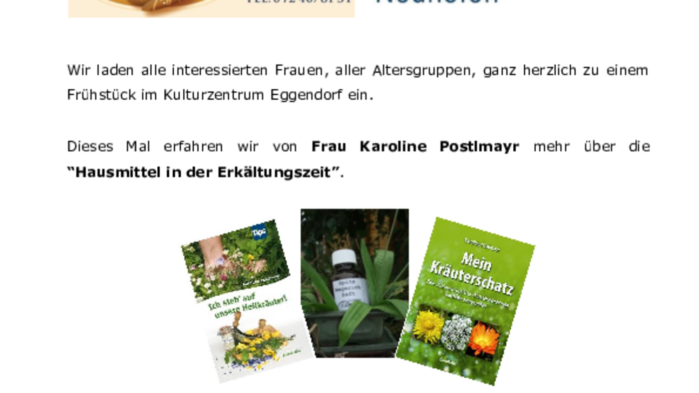 10.00 Uhr Tips zum Thema "Hausmittel in der Erkältungszeit" mit Karoline Postlmayr.