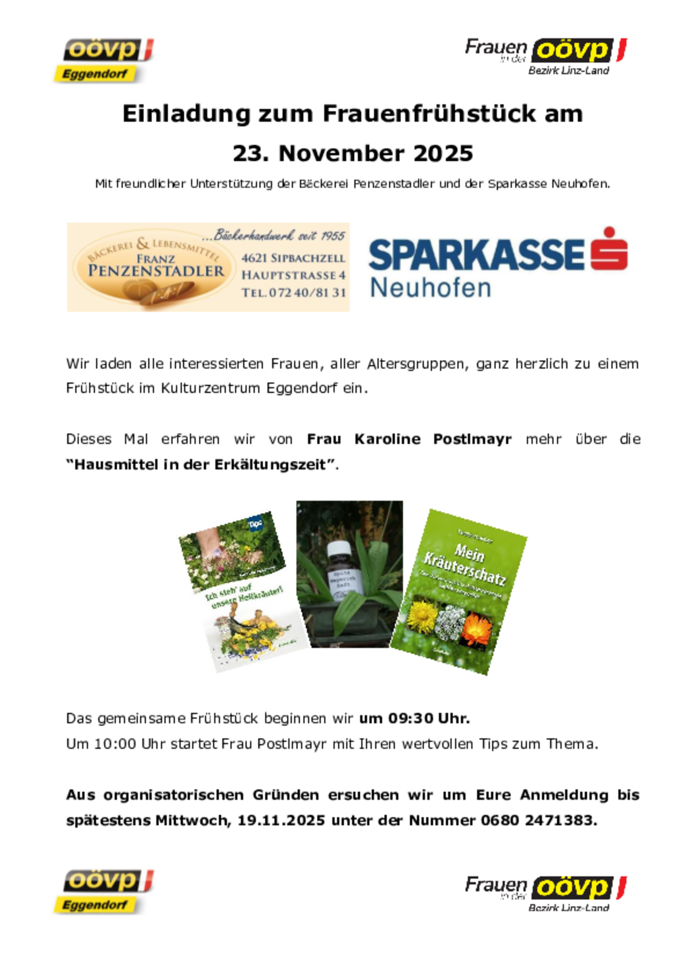 Aus organisatorischen Gründen ersuchen wir um Eure Anmeldung bis spätestens Mittwoch, 19.11.2025 unter 0680/2471383.