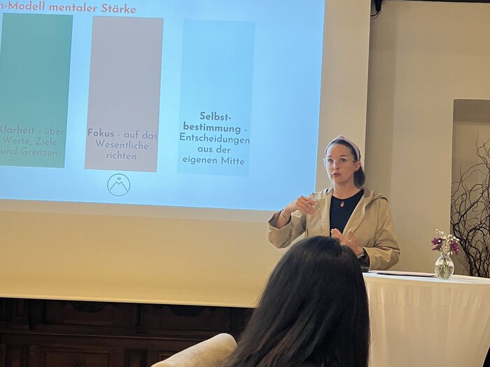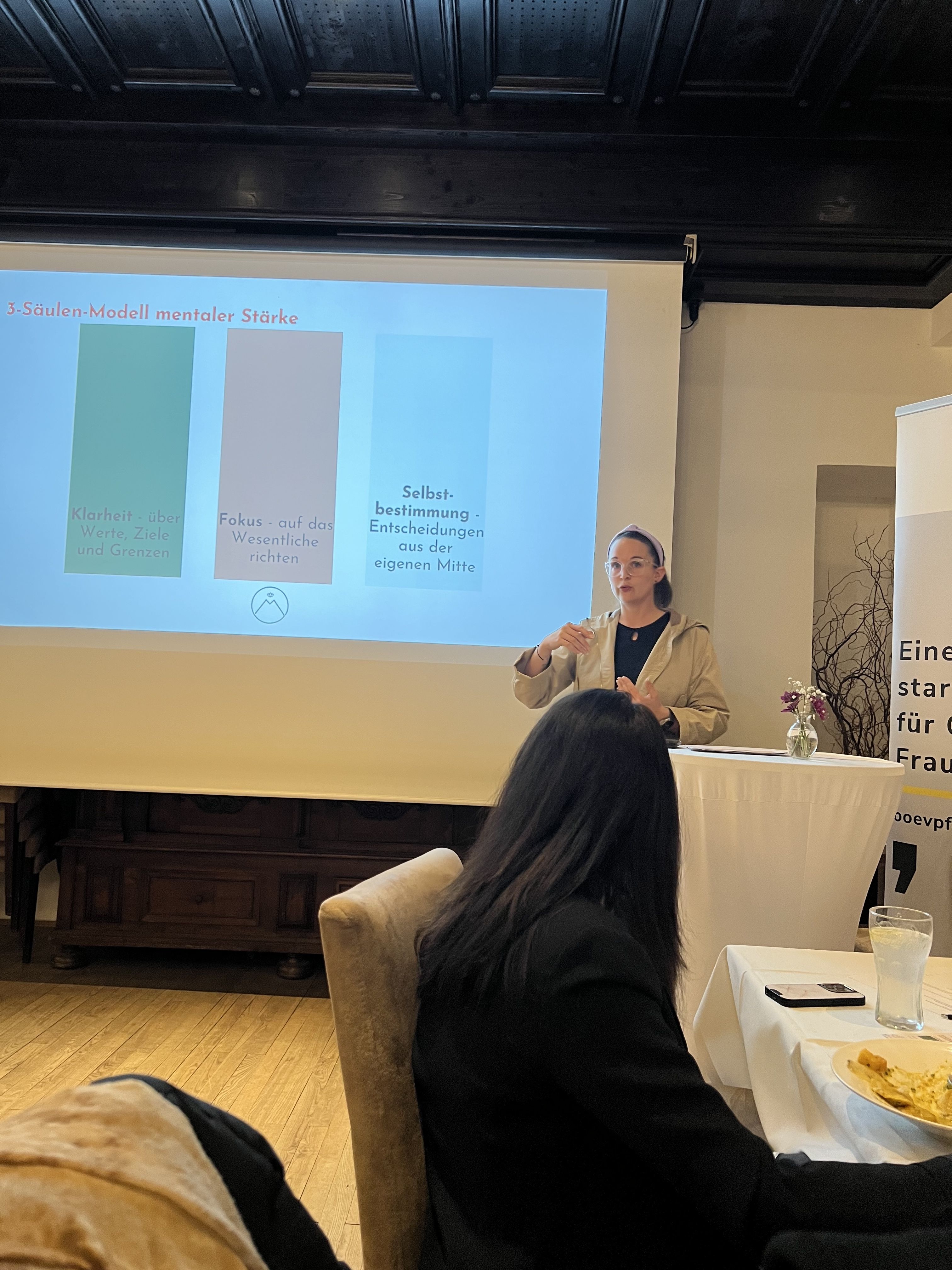 Im Mittelpunkt des Abends standen der offene Austausch, die Diskussion über Herausforderungen und die Chancen für die Kommunalpolitik, wenn Frauen und Männer gleichermaßen ihre Perspektiven einbringen. Impulsgeberin Miriam Birngruber motivierte die Teilnehmerinnen, ihren Platz einzunehmen und zeigte Wege auf, auch in herausfordernden Situationen fokussiert und selbstbestimmt zu bleiben.