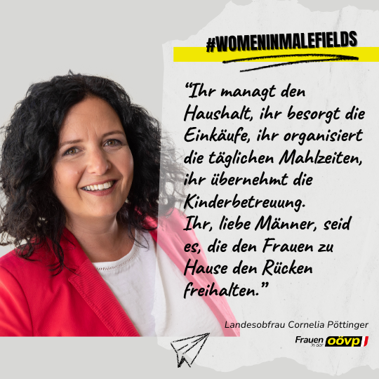 Die Frauen in der OÖVP setzen ein Zeichen gegen stereotype Geschlechterrollen und beteiligen sich an der Social-Media-Kampagne #womeninmalefields. Diese Aktion zielt darauf ab, das Bewusstsein für die Herausforderungen zu schärfen, mit denen Frauen, insbesondere Mütter, im Berufsleben oder in ihrer Funktion als Mandatarinnen konfrontiert sind.